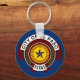 Button Keychain with flag of city of El Paso, Texas; blue flag with seal of the city