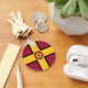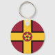 Keychain with design with a flag of historic county of Northamptonshire, in England, Great Britain; maroon flag with a gold cross and the county’s traditional rose in the centre