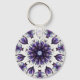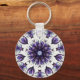 Chaveiro de mandala de flores com um padrão caleidoscópico criado de uma aquarela e desenho de tinta de uma flor de abstrato de lótus em azul, violeta e preto.