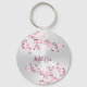 A cereja rosa bonito floresce num fundo prateado. Personalize esta chaveiro feminina com o seu nome!