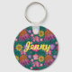 Belo Chaveiro Floral Teal Floral Patterned é um cheio design floral de cores como rosa e amarelos e contém flores como girassóis, conflituosos e papoilas