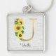 Chaveiro Floral de Girassol Dourado Monograma Inicial U