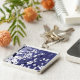 Flores brancas e folhas de características deste design em um fundo azul do grunge.