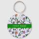 Chaveiro Flores Coloridas, Fundo Azul, Verde
