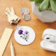 Uma vibrante e expressiva pintura de abstrato de aquarela de duas flores florescentes. As flores são renderizadas em tons roxos e cor-de-rosa, com contornos negros e contornos negros ousados, acrescentando um sentimento dinâmico e energético. A composição global é moderna e contemporânea.