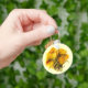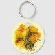 Esta adorável chaveiro apresenta uma composição vitalícia de rosas requintados secos sobre um fundo amarelo. As pétalas têm cor entre amarelo pálido e ouro até um damasco laranja profundo.
