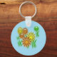 Néon 3D fica no fundo do verde-claro. Pétalas laranja, amarelas e verdes com aparência tridimensional de "gel", folhas verdes de grama. O fundo é azul pálido.