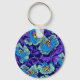 Chaveiro com as flores design de matérias têxteis de William Morris, púrpura e azuis (1834-1896). Lindas flores decoram um pano de fundo roxo escuro. Um presente maravilhoso para entusiastas da arte vitoriana.