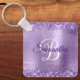 Brilhante e brilhante contra uma imagem gráfica de folha metálica fina e roxa de ombre púrpura esfregada. O monograma de caligrafia roxo e rico branco rico no centro pode ser personalizado. Todos os elementos brilhantes, metálicos, brilhantes e brilhantes nesta design moderna de cinzas são criados com gráficos digitais. Um precioso de gradiente de chaveiro de roças suaves para o presente de aniversário dela.
