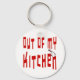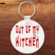 Fora da minha cozinha dizendo para cozinheiros com atitude, mães com Momitude e aqueles que se escravizam sobre um fogão quente por toda parte. Slogan de comida divertida em letras riscadas vermelhas no sangue com um decote de carne no 'N'