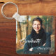O Chaveiro do formando é mostrado com um impressão de foto de exemplo com texto. Personalize este item e altere a foto e o texto para o seu. Foto do Stock freepik.com
