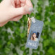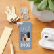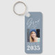 Um moderno, moderno, de dois lados, alumínio resistente, chaveiro de Formando - teclado com sua foto na frente. Todos Personalizados, com "Formando" em um roteiro elegante de tinta com "Classe de, Ano, Nome da Escola e Seu Nome" em tipografia moderna. A foto do formando é acentuada articamente com uma delicada placa de gradiente. O texto e as guarnições são brancos com o fundo em uma cor azul empoeirada. Se desejar, edite facilmente a cor de fundo na cor primária da sua escola. A ideia perfeita de presente de graduação para estudantes de segundo grau, faculdade e universidade.