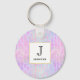 Corrente de chave cortada com um padrão de fundo abstrato. As aquarelas roxas e azuis cor-de-rosa formam este design artístico que apresenta formas retangulares verticais sobre um fundo malhado. Um quadrado em camadas acima com uma borda falsa de folha de ouro, seu dentro de texto personalizado.