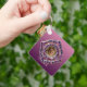 Suas duas fotos, frente e verso com texto enquadrado em ametista.