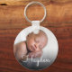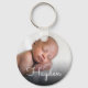 Crie sua própria cadeia de chaves redondas personalizada com seu nome de script e sua foto de bebê manuscritos personalizados.