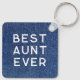 Adicione a sua própria foto de família a este chaveiro de tipografia azul de denim da MELHOR TIA EVER. Personalize o estilo de dissipação de texto de todos os bonés modernos, conforme necessário. Crie seu próprio presente de fotos personalizado para mãe e filha. O fundo azul denim é um efeito fotográfico.