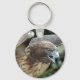 Para fãs de raptor! Chaveiro redondo, estilo alumínio, que mostra a imagem fotográfica de um falcão de cara vermelha com bico afiado. Imagem impressa em ambos os lados do chaveiro.