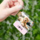 Este chaveiro simples e adorável apresenta a sua foto favorita do seu cão ou gato de estimação, com a palavra "amor" usando uma pata em texto preto moderno sobre um fundo cor-de-rosa pincelado. Você pode adicionar o nome do seu animal de estimação ou qualquer outra mensagem no verso.
