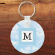 Esta bela chaveiro mostra uma foto de um céu azul calmo e um solteiro personalizável inicial em frente e atrás.