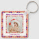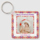 Foto personalizada Feliz Natal Pai de Jolly Pai Papa Key Ring. Uma chaveiro de fotos quadradas para celebrar seu pai no Natal. Substitua a foto pelo seu próprio marido e filho ou filhos; ou por você e seu pop. Uma foto quadrada funcionará melhor. Edite o texto usando o botão Personalizar. Um design de padrão geométrico maximalista e feliz para o Natal. Pai, pai, papa, pai e pai adorarão ser comemorados com este brilhante ouro amarelo, roxo quente e tradicional vermelho-padrão, vermelho-rosado, com uma fotografia do seu próprio filho ou filhos. Um presente econômico para organizar as chaves do lar e do escritório, antes de ter um Natal e Feliz ano novo festivos.