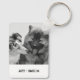 Adicione sua própria foto e texto para criar um presente de foto exclusivo. Este chaveiro de metal está pronto para ser personalizado com sua foto e seus próprios nomes ou mensagem em caracteres de estilo de máquina de escrever em preto em apuros. O estilo preto e branco simples e moderno parece excelente com fotos em preto e branco ou coloridas. Mostre uma foto favorita dos seus animais de estimação, uma foto da família ou uma memória de férias.