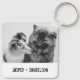 Adicione sua própria foto e texto para criar um presente de foto exclusivo. Este chaveiro de metal está pronto para ser personalizado com sua foto e seus próprios nomes ou mensagem em caracteres de estilo de máquina de escrever em preto em apuros. O estilo preto e branco simples e moderno parece excelente com fotos em preto e branco ou coloridas. Mostre uma foto favorita dos seus animais de estimação, uma foto da família ou uma memória de férias.