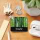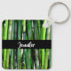 Uma cadeia-chave com um tema asiático. Uma fotografia de uma fileira de caules verdes e amarelados de bambu.