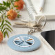 Este chaveiro redondo apresenta uma arte fractal azul-clara em um quadro redondo.