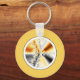Este chaveiro redondo bonito apresenta laranja ouro e cinza arte fractal em uma estrutura redonda.