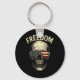 Skull with aviator sunglasses reflecting stars and stripes, edgy distressed design, bold freedom-themed typography, black background