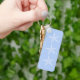 Esta bela chaveiro de inspiração costeira apresenta três estrelas brancas em azul claro. Personalize as costas com as informações de contato escolhidas.