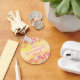 Sequências de bola Disco e borda de cowgirl para um padrão chic e estilmente desenhado para a cowgirl discográfica em todos nós. Mude a frase divertida ou adicione um monograma para personalizar e expressar sua personalidade. Chaveiro de Cowgirl amarela e rosa.