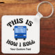 Este presente engraçado para um motorista de ônibus da cidade apresenta um dentro de ônibus de trânsito público azul a frase hilária "Isto é como eu rolo". Uma legal referência de pop para um motorista de ônibus que gosta de humor moderno. Chaveiro personalizado bonito para drivers com seu texto personalizado.
