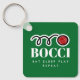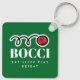 Funny bocci ball keychain gift for bocce player. Personalize with your own custom text or humorous quote. Fun Birthday gift idea for friends and family who love playing bocci. The Italian bowling game, like bowls or boules. Eat Sleep Play Repeat! Add your own team or league name optionally. Green or custom color. Double sided print.