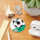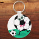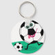 Bola de futebol de desenho animado bonita jogando futebol americano e chutando uma bola menor. Imagem disponível em vários presentes e produtos. Chaveiros. Teclas.