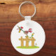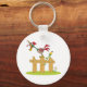 Um galo sentado sobre uma cerca que corta os pulmões para fora. Esta design parece realmente eficaz nesta Chaveiro