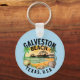 Chaveiro personalizável com uma vinheta retrorada da praia Galveston, frente d'água TX. Adicionar nome ou mensagem no verso. Disponível em várias roupas e acessórios.