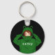 Garota Bonita com Sapo Verde Desenhando Chaveiro Negro. Um belo desenho de uma garota vestindo um sangrento sapo verde. Design de diversão para uma garota adolescente. Adicione seu nome ou apague-o.