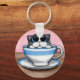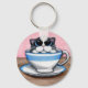 Chaveiro de gato preto Whimsical. Esse gatinho está procurando uma nova casa... ele está começando a crescer mais que seu teacup! Arte original: acrílico em papel aquoso © 2008 Lisa Marie Robinson