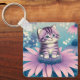 Chaveiro Gatinho no grampo de flores roxas