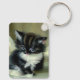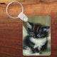 Chaveiro Gatinho Preto e Branco Antigo com Língua para Fora