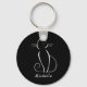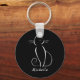Gato branco minimalista num chaveiro preto de fundo. Personalize esta chaveiro elegante com o seu nome.