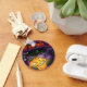 Um gato preto vestindo roupões roxas e correntes metálicas, um chapéu de bruxa com velas e segurando uma abóbora brilhando rindo. Você gosta de gatos e temas de Dia das Bruxas? Se assim for, é esta que vos serve! Feliz Dia das Bruxas! Por Gatos Acrínicos