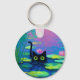 Chaveiro Gato Negro Engraçado Nadando Pond | Quirky Art