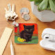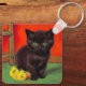 Chaveiro com um gato preto no estilo Van Gogh! Este belo gatinho fica adoravelmente ao lado dos girassóis sobre um chão verde contra uma parede vermelha. Um presente bonito para amantes de gatos e colecionadores de arte holandeses!