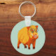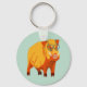 Chaveiro de porco engraçado com a ilustração de um javali pintado digitalmente com grandes presas e óculos em forma de coração em cores amarelas, laranja e azuis brilhantes.