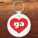 Esta cadeia-chave apresenta um coração vermelho vibrante contendo as letras negrito, brancas, arredondadas minúsculas ga, uma abreviação lúdica para a Geórgia, o estado de pêssego.
