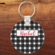 Belo padrão de Gingham preto e branco Chaveiro personalizado, é um design clássico que contém um aspecto controlado ou xadrez de búfalos, design lindo e colorido. Compre uma hoje!