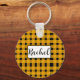 Belo Chaveiro personalizado do padrão amarelo e preto Gingham é um design clássico que contém um aspecto controlado ou xadrez de búfalos, design lindo e colorido. Compre uma hoje!