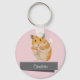 This lovely girls personalised button key chain features a cute fluffy Golden Hamster holding a flower against a pink background. The name can be changed.A lovely gift or stocking filler.